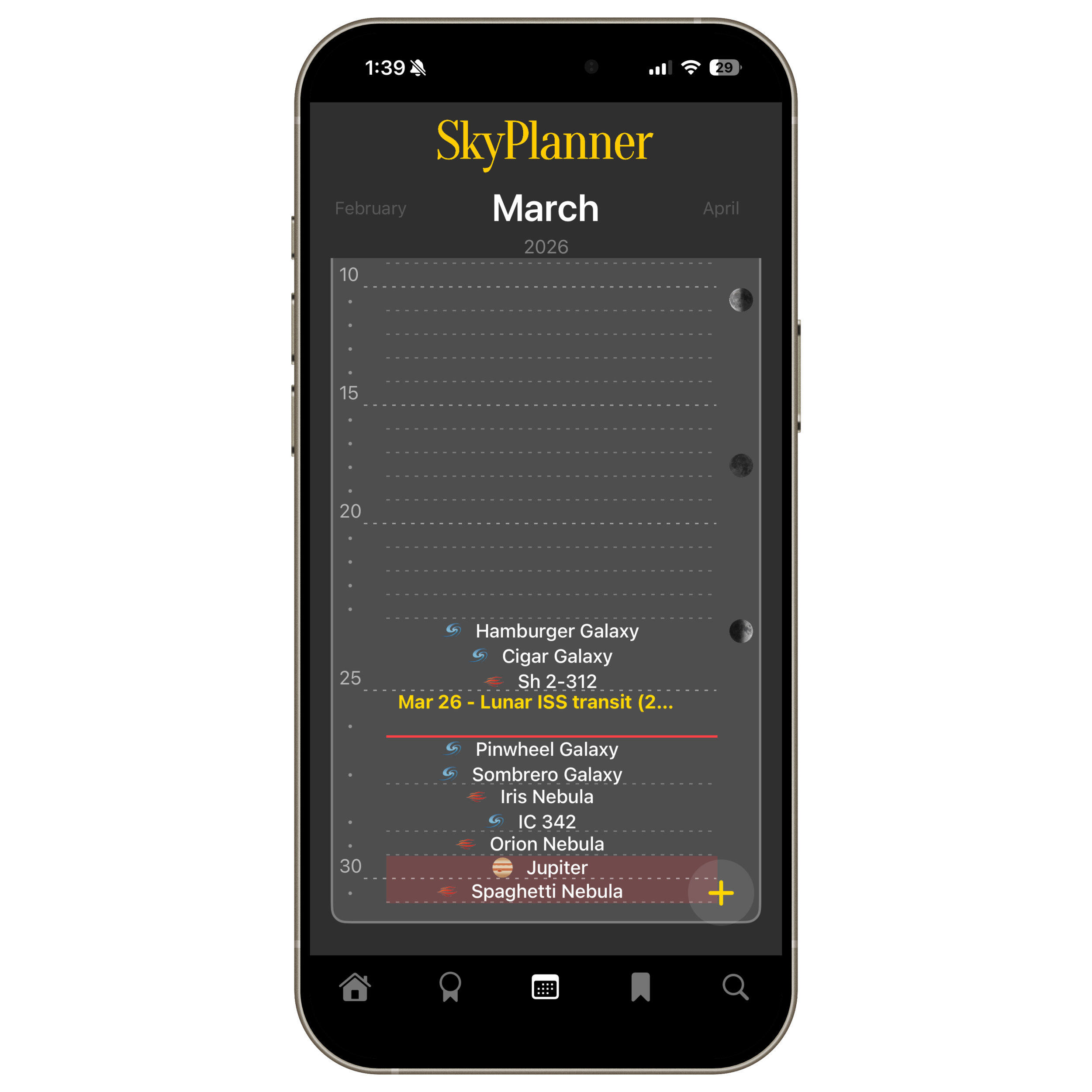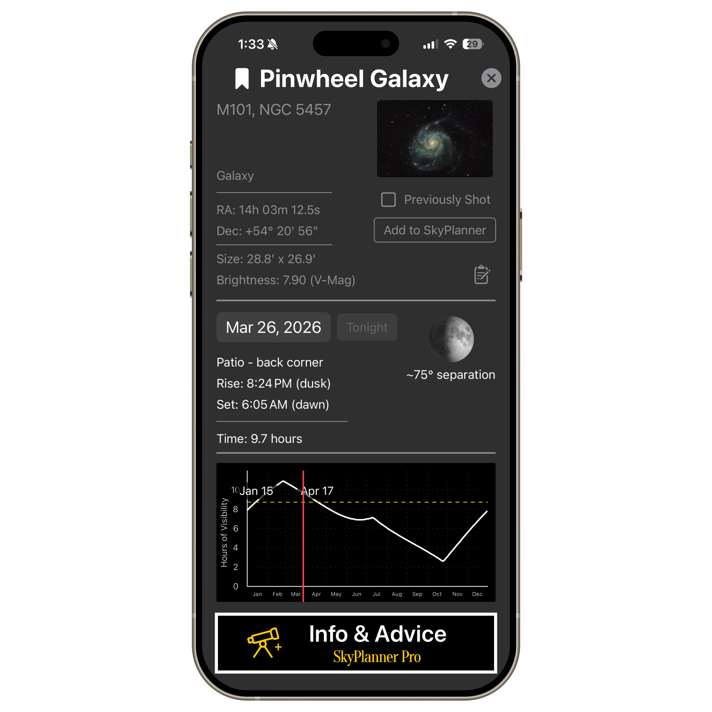 From any target detail page, click Add to SkyPlanner