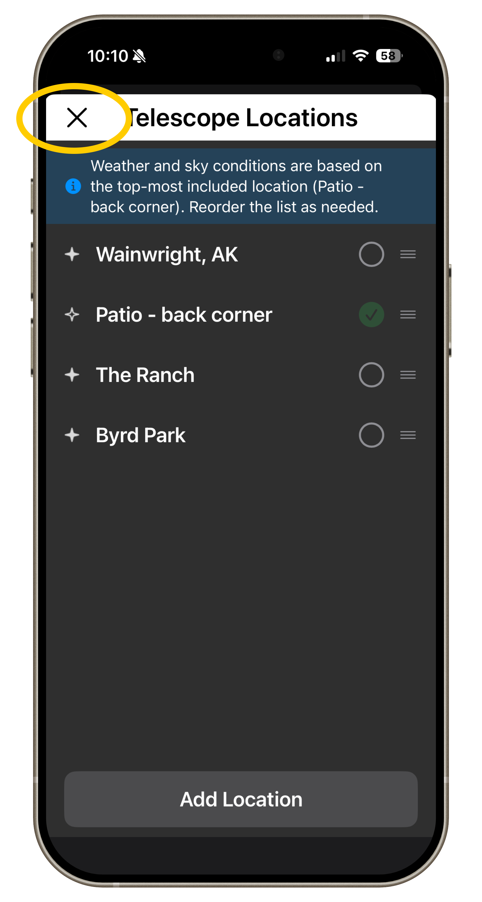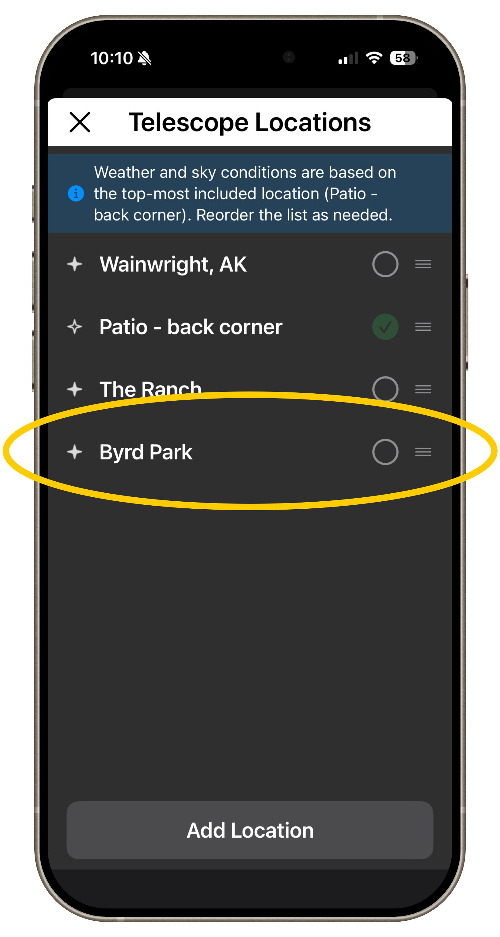 Note: Horizon tracing proceeds from an existing location. If you don't already have a location you wish to augment with a custom horizon, create one first (instructions for that here).